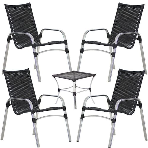 Jogo 4 Cadeiras Emily E Mesa Garden Em Alumínio Trama Preto