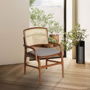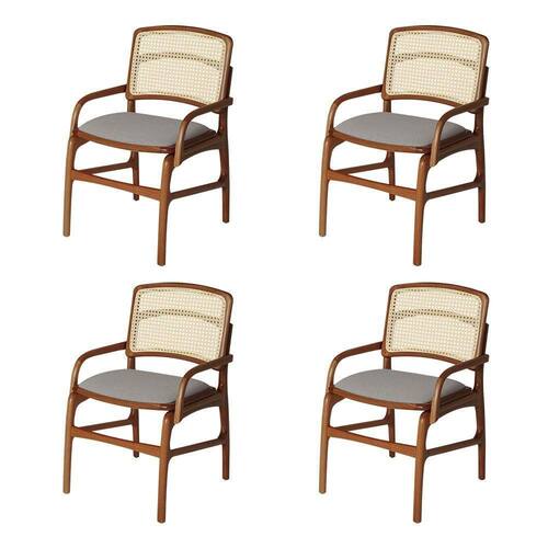 AS IMAGENS SÃO MERAMENTE ILUSTRATIVAS E PODEM SOFRER VARIAÇÕES DE COR E PEQUENOS DETALHES DE ACORDO COM O SEU MONITOR, ILUMINAÇÃO DO AMBIENTE E ATÉ MESMO A SUA PERCEPÇÃO VISUAL.Jogo 4 Cadeiras para Jantar FlorenÃa em Madeira Jequitibà Terra BraÃo Encosto Palha Linho Cinza