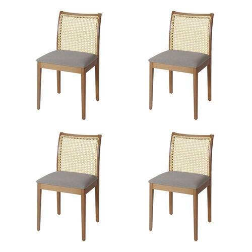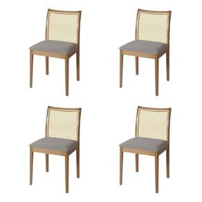 AS IMAGENS SÃO MERAMENTE ILUSTRATIVAS E PODEM SOFRER VARIAÇÕES DE COR E PEQUENOS DETALHES DE ACORDO COM O SEU MONITOR, ILUMINAÇÃO DO AMBIENTE E ATÉ MESMO A SUA PERCEPÇÃO VISUAL.Jogo 4 Cadeiras para Jantar Juliana Jequitibà Natural Estrutura em Madeira MaciÃa Linho Cinza