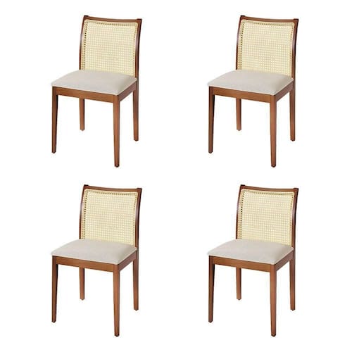 AS IMAGENS SÃO MERAMENTE ILUSTRATIVAS E PODEM SOFRER VARIAÇÕES DE COR E PEQUENOS DETALHES DE ACORDO COM O SEU MONITOR, ILUMINAÇÃO DO AMBIENTE E ATÉ MESMO A SUA PERCEPÇÃO VISUAL.Jogo 4 Cadeiras para Jantar Juliana Jequitibà Terra Estrutura em Madeira MaciÃa Linho Bege