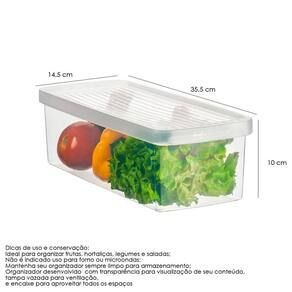 Com todas as qualidades que você merece e preço que cabe no seu bolso, foi desenvolvido para armazenar frutas, verduras e legumes no refrigerador. Possui tampa vazada que permite a circulação de ar, conservando o frescor dos alimentos por muito mais tempo. Além disso, permite empilhamento para otimizar o espaço no refrigerador. Transparente, possibilita uma rápida identificação do conteúdo.