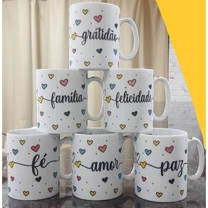 Jogo 4 canecas 300ml Frases Motivacionais - Kit PorcelanaContém 6 canecas com design bem interessante, você pode presentear as pessoas que você gosta. Frases: Amor, Fé, Paz, Felicidade, Gratidão, Família. (seguirá na compra 4 dessas)Forte resistente, pode ir ao micro-ondas. Ótimas para servir café com leite, água e bebidas em geral. Decalques com queima e fixação em alta temperatura, o que dá um brilho e charme há qualquer ambiente.OBS: Embalagem contem 4 unidades Marca: Antilope Decor Porcelanas