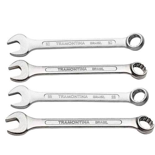Este kit inclui 4 chaves: Chave combinada 20 mm tramontina aço cromado Chave combinada 21 mm tramontina aço cromado Chave combinada 22 mm tramontina aço cromado Chave combinada 23 mm tramontina aço cromado