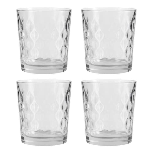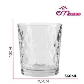 Jogo 4 Copo de Vidro Transparente para Whisky Diamond 360ml Em Casa Tem