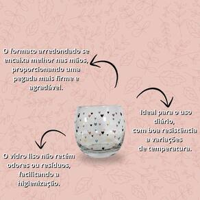 1 Kit com 04 (quatro) copos redondos de vidro com estampas e capacidade de 345ml cada.