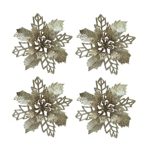 Flor Bico de Papagaio Natalina com Glitter Champanhe – Pick com Presilha 9cm (Jogo com 4 unidades)