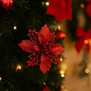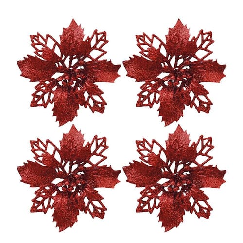 Adicione um toque de brilho e sofisticação à sua decoração natalina com este jogo com 4 flores bico de papagaio modelo pick. Com acabamento em glitter vermelha e design delicado, são perfeitas para realçar guirlandas, arranjos florais, árvores de Natal, embrulhos especiais ou qualquer composição decorativa temática.