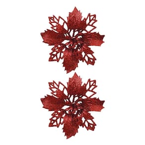 Cada flor mede 9cm x 9cm e conta com presilha tipo jacaré na base, permitindo fixação prática, firme e segura nos mais diversos suportes. O brilho suave do glitter na tonalidade vermelha confere um visual elegante, refinado e festivo, ideal para composições de luxo.