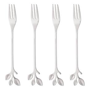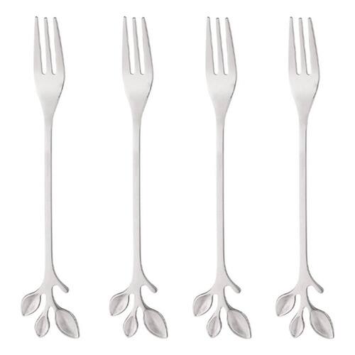 Jogo 4 Garfos para petisco Leaves Aço Inox Prata Wolff
