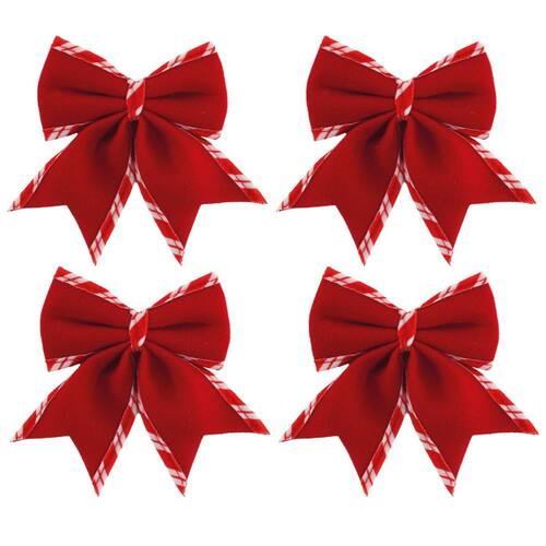 04 Laços Natalinos Veludo Vermelho Borda Candy 12x13cm