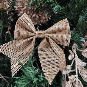 Jogo 4 Laços Telado Glitter Lantejoula Champanhe Natal 13cm