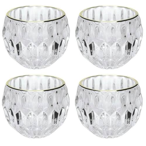 Jogo 4 Porta Velas Castiçal Vidro Facetado Borda Dourado