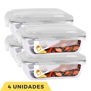 Jogo 4 Potes Hermeticos Vidro Retangular Tampa Travas 640ml - Jogo de potes herméticos de vidro