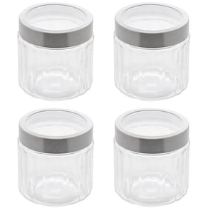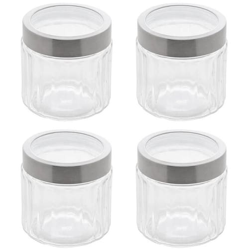 Jogo 4 Potes Redondos de Vidro com Tampas em Aço Inox 870ml Sydney Lyor Transparentes.