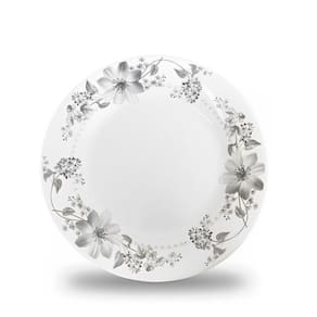 Jogo 4 Prato Raso de Vidro Branco Flores Cinza Flowers Grey 26cm Em Casa Tem
