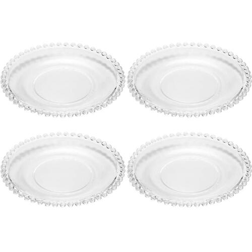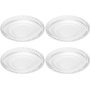 Jogo 4 Pratos de Sobremesa Wolff Pearl Cristal Rasos 20cm Pratinhos de Lanche Mesa Posta.
