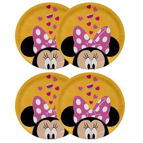 Refeições com Diversão! Jogo de Pratos Rasos Melamina Minnie - 20cm, 4 Unidades