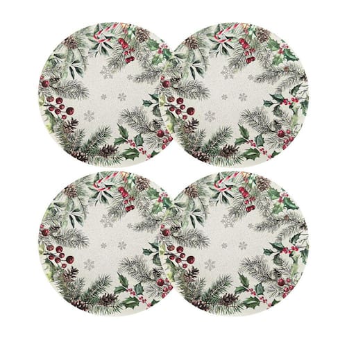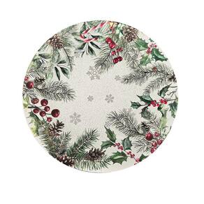 -04 unidades Sousplat Natal Decorado Estampa Pinhas Folhagens e Berrries 33cm - Magizi
