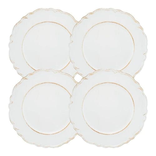 Jogo 4 Sousplat Redondo Patinado Plástico Moon Branco Lyor 33cm