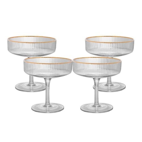 Jogo 4 Taça de Vidro Coupe com Borda Dourada Lines Wolff 200ml