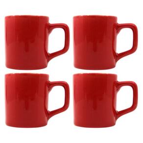 Jogo 4 Xícaras Café 80mL Cerâmica Vermelho Mesa Posta