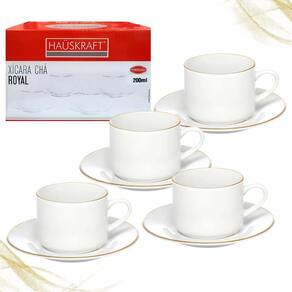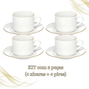 Observações: - Jogo com 4 xícaras + 4 pires, totalizando 8 peças; - Temos anúncio desse modelo de xícara com capacidade de 200ml; - O produto vai na caixa própria.