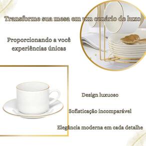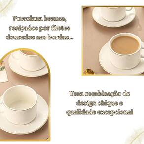 Experimente a sofisticação em cada detalhe com nosso Conjunto de 4 Xícaras com Pires em Porcelana Branca e Borda Dourada Imagine-se desfrutando de momentos memoráveis com amigos e familiares, servindo suas bebidas favoritas nestas elegantes xícaras. A porcelana branca de alta qualidade destaca-se pela pureza e classe, enquanto a borda dourada adiciona um toque de luxo inigualável. Cada xícara é cuidadosamente projetada para proporcionar uma experiência de degustação única. A borda dourada não apenas ressalta a beleza, mas também adiciona um elemento de glamour à sua mesa. Adquira agora seu conjunto e eleve a sua experiência de servir a um novo patamar