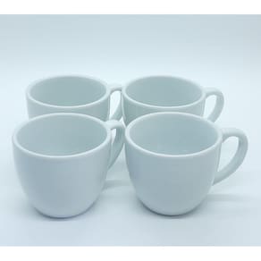 Kit Jogo 4 Xícaras Gigante Sopa 440ml Tipo tigela c/ pires - Porcelana branca