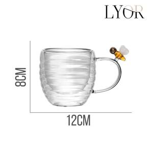 Xícara de Chá Vidro Parede Dupla Abelha Lovely Bee 180ml Lyor