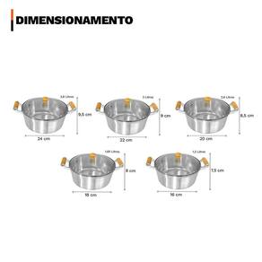Distribuído por feheros shop Jogo 5 caçarolas alumínio fundido polido tampa de vidro Atenção As caçarolas são feitas de alumínio fundido polido, oferecendo alta resistência e excelente condução térmica, o que garante cozimento rápido e uniforme. As tampas de vidro com puxadores de madeira permitem acompanhar o preparo com segurança. Para conservar melhor o produto, utilize utensílios de silicone, nylon ou madeira e evite aquecer as peças vazias. Produto seguro, livre de substâncias tóxicas como o pfoa. Informações do produto Apresentamos o jogo 5 caçarolas alumínio fundido polido com tampa de vidro da feheros, um conjunto indispensável para quem deseja cozinhar com qualidade, estilo e praticidade. As peças são feitas em alumínio fundido polido, com tampas de vidro temperado que permitem acompanhar o preparo dos alimentos sem precisar abrir, mantendo o sabor e os nutrientes. Os puxadores de madeira oferecem segurança e conforto durante o manuseio, enquanto o design moderno e acabamento sofisticado tornam o conjunto ideal para qualquer cozinha. Especificações técnicas - durabilidade: o alumínio fundido proporciona maior resistência, ideal para o uso diário e intenso - design funcional: a tampa de vidro é prática para monitorar os alimentos enquanto cozinham, sem perder o calor - fácil limpeza: o acabamento polido impede o acúmulo de resíduos e facilita a remoção de sujeira - saúde e segurança: material livre de substâncias tóxicas, como pfoa, para garantir a segurança de suas receitas - versatilidade no cozimento: compatível com fogões a gás e a lenha. Ideal para qualquer cozinha e tipo de preparo - eficiência energética: com a sua capacidade de retenção e distribuição de calor eficiente, permite que você cozinhe seus alimentos economizando energia e tempo Ficha técnica do produto - panela caçarola 16 cm: diâmetro: 16 cm x altura: 8,0 cm x capacidade: 1,1 litros - panela caçarola 18 cm: diâmetro: 18 cm x altura: 8,5 cm x capacidade: 1,5 litros - panela caçarola 20 cm: diâmetro: 20 cm x altura: 9,0 cm x capacidade: 2,0 litros - panela caçarola 22 cm: diâmetro: 22 cm x altura: 9,5 cm x capacidade: 2,5 litros - panela caçarola 24 cm: diâmetro: 24 cm x altura: 10,0 cm x capacidade: 3,0 litros - material: alumínio fundido polido - cabo: madeira - tampa: vidro temperado com bordas de aço inox - espessura: entre 3 e 4 mm - cor: prata alumínio polido - compatibilidade: fogões a gás e a lenha Antes do primeiro uso - lave com uma esponja macia e detergente líquido - seque bem com um pano seco - aplique uma fina camada de óleo vegetal na parte interna - leve ao fogo baixo por 2 minutos - deixe esfriar, lave novamente e seque antes de usar Após o uso - evite choques térmicos. Deixe o produto esfriar antes de lavar - lave com água morna e detergente neutro, usando uma esponja macia - use utensílios de silicone, nylon ou madeira para preservar os produtos Itens inclusos no pacote - 01 panela caçarola 16 cm de diâmetro, 8,0 cm de altura, capacidade de 1,1 litros - 01 panela caçarola 18 cm de diâmetro, 8,5 cm de altura, capacidade de 1,5 litros - 01 panela caçarola 20 cm de diâmetro, 9,0 cm de altura, capacidade de 2,0 litros - 01 panela caçarola 22 cm de diâmetro, 9,5 cm de altura, capacidade de 2,5 litros - 01 panela caçarola 24 cm de diâmetro, 10,0 cm de altura, capacidade de 3,0 litros - 05 tampas de vidro com puxadores de madeira Todas as fotos são reais dos produtos. Qualquer dúvida, estamos à disposição Dúvidas frequentes 01 - os produtos são novos Tem R: sim, todos são novos, com 3 meses de do fabricante. 03 - como faço para acompanhar o envio R: ao acessar sua conta, nos detalhes do pedido, estará disponível o código de rastreio para acompanhar a entrega.
