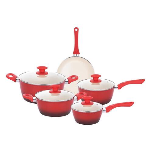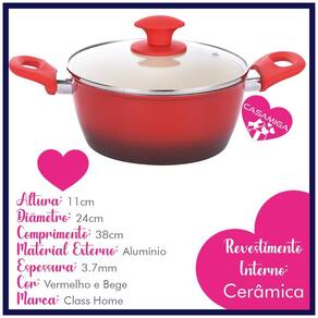 - Espessura: 3,7 mm - Material: Alumínio com revestimento cerâmico - Marca: Class Home - Cor: Vermelho - Conteúdo: 5 peças