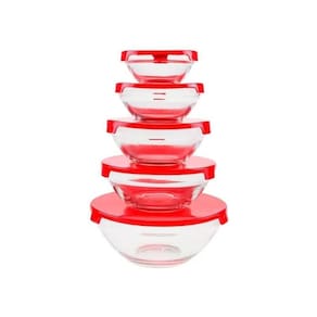 Conjunto com 5 capacidades: volumes variados para diferentes tipos de alimentos.
