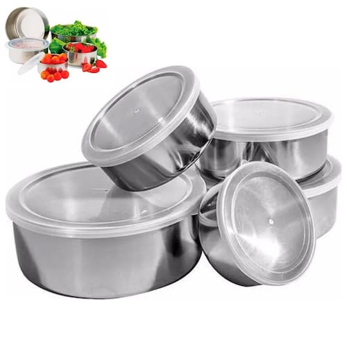 Jogo 5 Potes em Inox com Tampa de Polipropileno