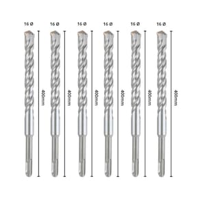 Conteúdo da Embalagem: - 06 Brocas SDS Plus 16x400 mm de Aço Carbono e Tungstênio.