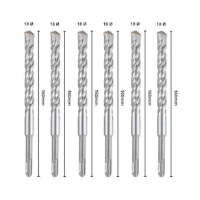 Conteúdo da Embalagem: - 06 Brocas SDS Plus 18x160 mm de Aço Carbono e Tungstênio.