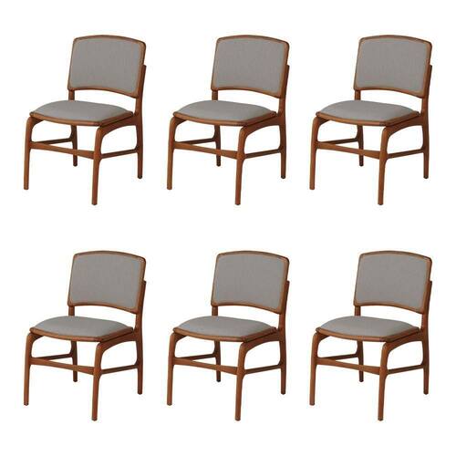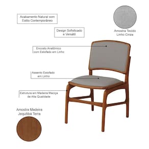 AS IMAGENS SÃO MERAMENTE ILUSTRATIVAS E PODEM SOFRER VARIAÇÕES DE COR E PEQUENOS DETALHES DE ACORDO COM O SEU MONITOR, ILUMINAÇÃO DO AMBIENTE E ATÉ MESMO A SUA PERCEPÇÃO VISUAL.Jogo 6 Cadeiras de Jantar FlorenÃa em Madeira Jequitibà Terra Encosto em Tecido Premium Linho Cinza