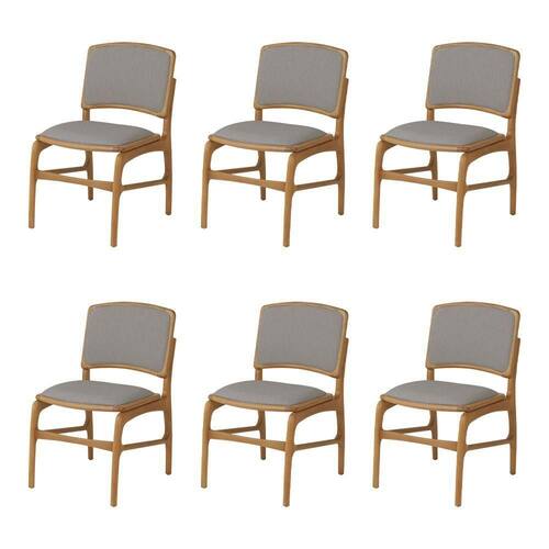 AS IMAGENS SÃO MERAMENTE ILUSTRATIVAS E PODEM SOFRER VARIAÇÕES DE COR E PEQUENOS DETALHES DE ACORDO COM O SEU MONITOR, ILUMINAÇÃO DO AMBIENTE E ATÉ MESMO A SUA PERCEPÇÃO VISUAL.Jogo 6 Cadeiras de Jantar FlorenÃa Jequitibà Natural Encosto em Tecido Premium em Linho Cinza