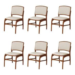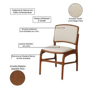 AS IMAGENS SÃO MERAMENTE ILUSTRATIVAS E PODEM SOFRER VARIAÇÕES DE COR E PEQUENOS DETALHES DE ACORDO COM O SEU MONITOR, ILUMINAÇÃO DO AMBIENTE E ATÉ MESMO A SUA PERCEPÇÃO VISUAL.Jogo 6 Cadeiras de Jantar FlorenÃa Jequitibà Terra Encosto em Tecido Premium em Linho Bege