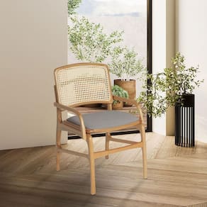 AS IMAGENS SÃO MERAMENTE ILUSTRATIVAS E PODEM SOFRER VARIAÇÕES DE COR E PEQUENOS DETALHES DE ACORDO COM O SEU MONITOR, ILUMINAÇÃO DO AMBIENTE E ATÉ MESMO A SUA PERCEPÇÃO VISUAL.Jogo 6 Cadeiras para Jantar FlorenÃa em Madeira Jequitibà Natural BraÃo Encosto Palha Linho Cinza