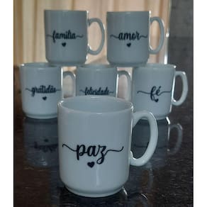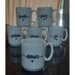 Jogo 6 canecas 120ml Frases Motivacionais - Kit Porcelana