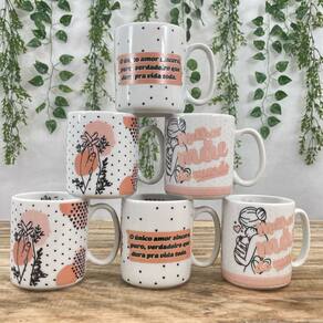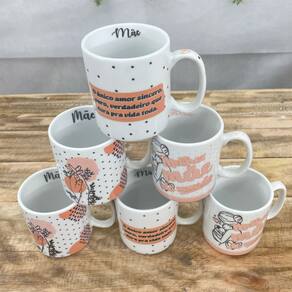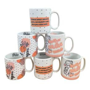 Jogo 6 canecas 300ml Frases Mãe - Kit Porcelana - Decoração Poá Contém 6 canecas com design bem interessante, você pode presentear as pessoas que você gosta.Frases: VariadasForte resistente, pode ir ao micro-ondas.Ótimas para servir café com leite, água e bebidas em geral. Muito boas para presentear as mães, sejam de sangue ou de coração.Decalques com queima e fixação em alta temperatura, o que dá um brilho e charme há qualquer ambiente.OBS: Embalagem contem 6 unidades As frases à serem enviadas na compra seguem de acordo com a disponibilidade no momento Marca: Antilope Decor Porcelanas