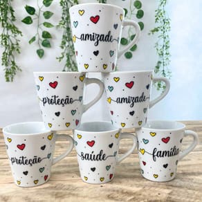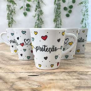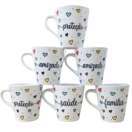Jogo 6 canecas Cônicas 120ml Frases Motivacionais -PorcelanaContém 6 canecas com design bem interessante, você pode presentear as pessoas que você gosta. Frases: Família, Proteção, Amizade, Saúde, Seja Luz, Amor, Gratidão, Fé, Paz, Sucesso e Felicidade.
