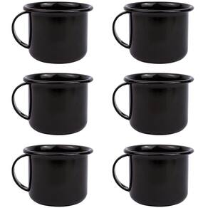 Este jogo de seis xícaras de ágata 90ml da Esmaltados Silva é excelente para seu dia a dia, na hora do chá, cafezinho ou leite. Desenvolvidas em aço carbono e revestidas interna e externamente com dupla camada de esmalte vítreo de alta durabilidade, as canecas esmaltadas possuem design rústico regional na cor preto e lembram as louças usadas antigamente, especialmente nas casas de avós. Ean: 7797087682559
