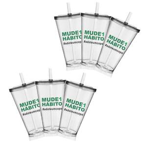 Jogo 6 Copos Com Tampa E Canudo Personalizados Eco Hábitos Kit eco com copos eco personalizados para ajudar o meio ambiente. Adote o seu copo e evite descartáveis. Juntos somos mais fortes. Especificações: Material: Poliestireno Acrílico PS , Altura: 14,5 cm, Diâmetro: 9,5 cm, Capacidade: 550 ml, Cor: Transparente, Quantidade: 6 peças Ean: 7897581915952