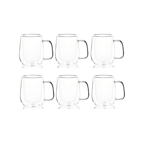 Esse jogo de 6 Copos além de lindo possui alta resistência, design moderno com característica leve e duráveis. Seu material todo em vidro borossilicato transparente e acabamento com parede de vidro torna o produto diferenciado e estiloso e ainda mantém a temperatura ideal para suas bebidas de modo que você não irá correr o risco de queimar os dedos, pois a parte externa não retém o calor interno.
