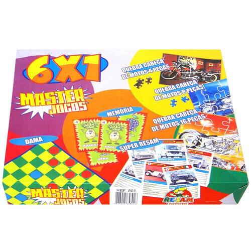 Jogo 6 em 1 dama / 3 quebra cabeca / memoria / super resam master jogos na caixa
