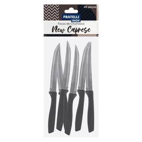 Jogo 6 Facas de Churrasco Mesa New Caprese Preto Fratelli Inox