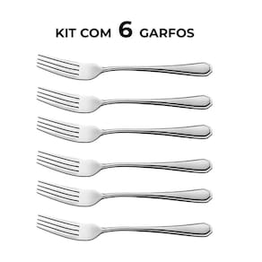 Jogo 6 Garfos Aço Inox Cor Prata Linha Silver Em Casa Tem 21cm