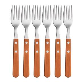 Cada garfo possui lâminas em aço inoxidável, que conferem resistência à corrosão e facilitam a limpeza. O cabo de madeira proporciona uma pegada firme e confortável, além de adicionar um toque de elegância à peça. A combinação de materiais garante a durabilidade do conjunto, mesmo com uso frequente.