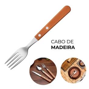 Jogo 6 Garfos 6 Colheres e 6 Facas Cabo de Madeira Churrasco Astana 20cm Em Casa Tem